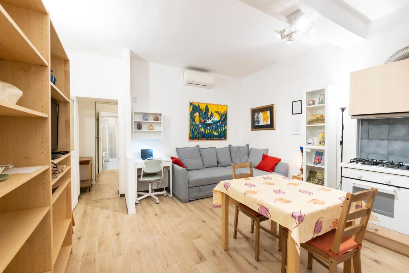 Appartamento Monolocale. Featuring free toiletries and bathrobes, this studio includes a private bathroom with a shower and a hairdryer. The well-equipped kitchenette features a stovetop, a refrigerator, kitchenware and an oven. This studio is air-conditioned and has a seating area with a flat-screen TV, a washing machine, a tea and coffee maker, a dining area, as well as a wardrobe. The unit has 2 beds. ;