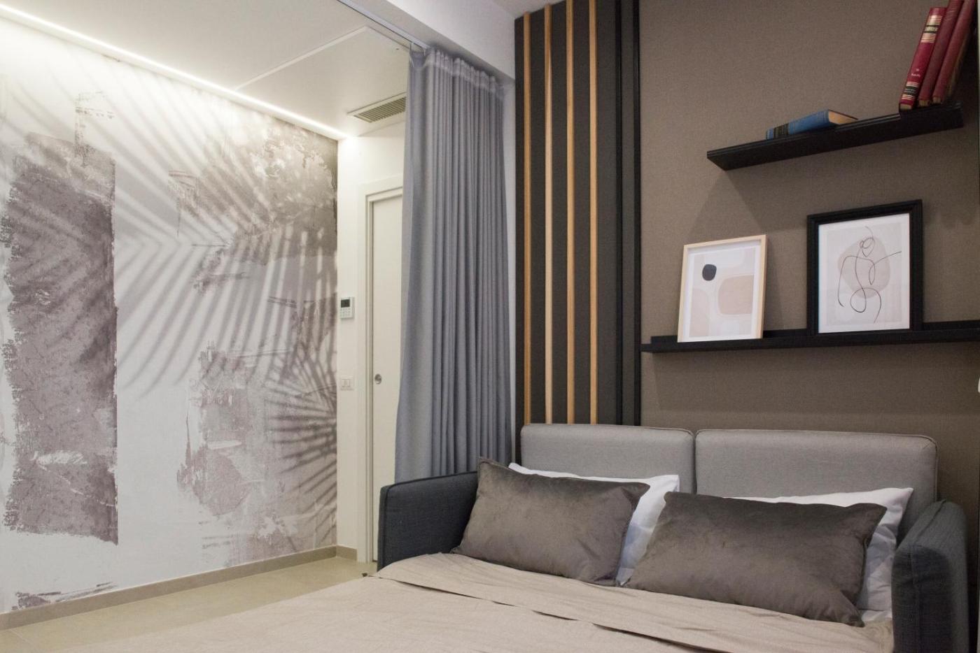 Appartamento Deluxe. This apartment consists of 1 living room, 1 separate bedroom and 1 bathroom with a bath and free toiletries. The apartments kitchenette, which features a stovetop and a refrigerator, is available for cooking and storing food. The air-conditioned apartment provides a flat-screen TV with satellite channels, soundproof walls, a tea and coffee maker, a dining area as well as city views. The unit offers 2 beds.
