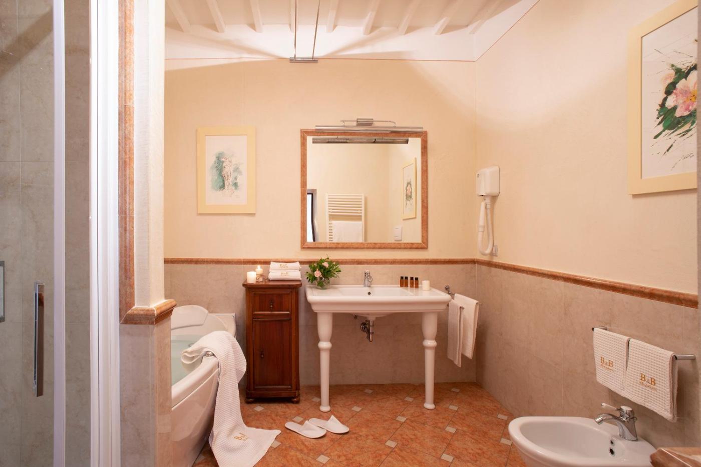 Camera King con Vasca Idromassaggio. This double rooms standout feature is the hot tub. The double room includes a private bathroom, well-fitted with a bath, a shower, a bidet, a hairdryer and slippers. The air-conditioned double room offers a TV, a minibar, a tea and coffee maker, a wardrobe as well as city views.